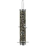 The Droll Yankees B7F wild bird feeder has an extra large seed capacity.The wide diameter, 20" long seed tube holds 21/2 quarts of seed. Provides 6 feeding ports and is designed to feed all types of wild bird seed mix. Polycarbonate seed tube with die cast metal top, bottom and seed ports for years of use.