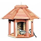 Beautiful Aromatic Cedar Wild Bird Feeder Features a classic 'Gazebo Style' design with a generous 4-pound seed capacity The hanging rope is included Top cap opens for easy refilling.