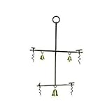 Black powdercoated with three small solid brass bells.Both tiers rotate independently. Dimensions:18.5 in. H x 12.25 in. W