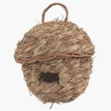 Acorn shaped brown rafia roosting pocket can be attached to trellises, fences, or tree branches. May be used as a nest in springtime and as a sheltered place for resting when it is cold outside. Dimensions: 7" x 6" x 6".